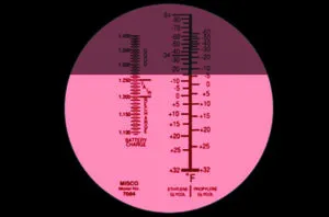 - The refractometer reading looks a lot like the periscope of a submarine. Like any tool, it requires some practice to learn to interpret the readings..