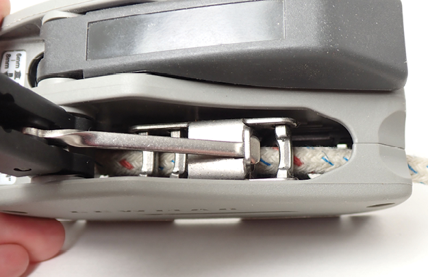 • Cam cleats are faster to use. There is no need to wrap the rope into the jammer jaws, and there is one less turn to throw off during a tack—and no pesky stripper horn to grab the line. If you need to grind in just a little line you simply pull the tail through the cam cleat as you grind, without releasing. To ease, there is no need to unwind the rope from the self-tailer, just snap the tail out, ease, and re-cleat (a ¼-turn with the handle might be needed to unload the line enough to get it in the cam cleat).