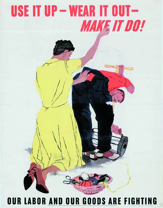This old poster, circulated by the U.S. Government in 1943 to inspire thrift during World War II, stood out among the boat photos sent to me by Technical Editor Drew Frye to accompany his report on penny-pincher sailing.