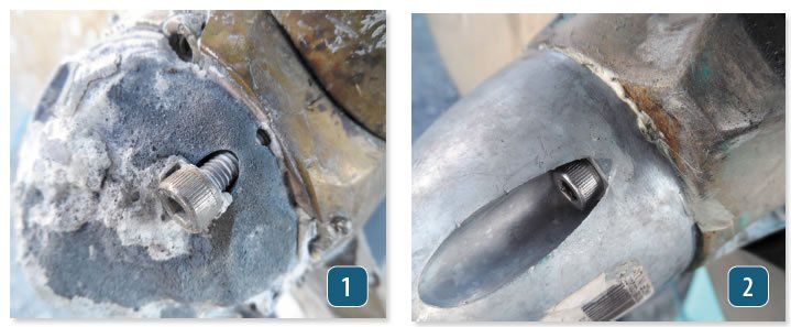 A common concern is that the zinc may fall off, leaving the boat unprotected. None of the bolts failed when we first re-torqued and then removed them at the end of the test, but since they did not experience the vibration of actual use, this does not tell us much.