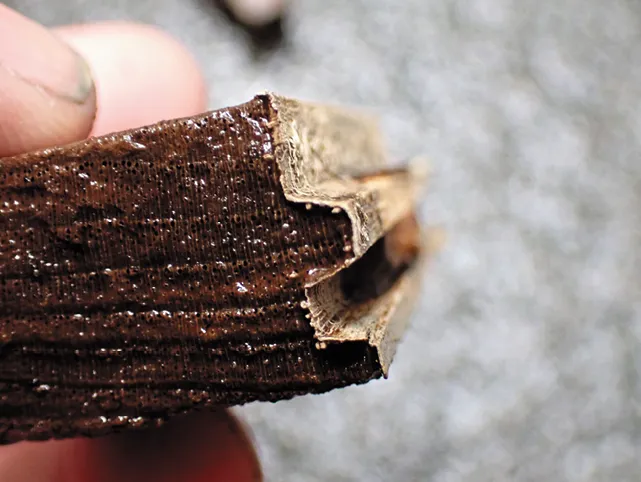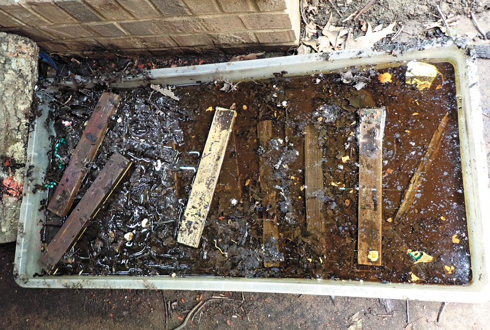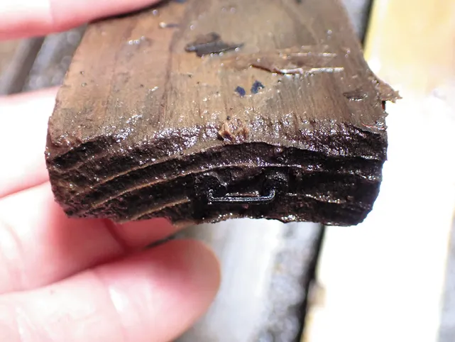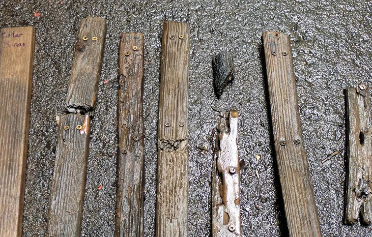 To simulate a worst-case scenario, we placed the samples in a sealed plastic storage bin with fresh water saturated compost and left them for eight years. We wanted to simulate the most horrific bilge imaginable. Our compost heap was truly a horror show. It hosted much more bacteria and fungus than a typical bilge, and our containers did not benefit from the presence of saltwater, which can inhibit rot. Based on what we’ve observed over the years and learned from the results of independent tests, the eight years in our wood torture chamber were the equivalent of about 15 to 25 years submerged or exposed to a damp environment.