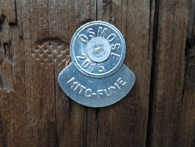 2. A power pole not far from our test location has a badge indicating the year of its last borate treatment.