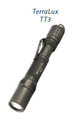 Two AA batteries are needed for a very bright 225 lumens of light. The working voltage is between 1.8 and 3.2 volts, and the run times are estimated at 1.3 hours on high, eight hours on medium, and 90 hours when placed on its lowest light setting. The petite flashlight measures 9.2 x 3.2 x 1.8 inches and meets IPX8 water-resistance standards, meaning its submersible to 6 feet for four hours. The TerraLux has a tempered-glass lens and comes with a spare switch cover, a spare O-ring, a holster, lanyard, and spring clip. It sells for $60 online. (www.terraluxportable.com)