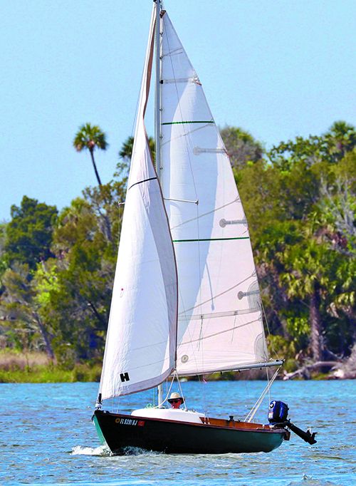 shot of his Carl Alberg-designed Cape Dory Typhoon reaching across Florida’s Crystal River.