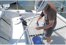 Bright, shiny and new looking. That was what we wanted when were shopping for our dream boat, and that is the impression our new-used PDQ catamaran gave. What was behind that spit-shine on a used boat? Besides the obvious hours of labor by the previous owner, it took two baskets of cleaning products, all stuffed in the stern lockers.