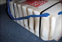 I need to buy a marine offshore life raft, and I’ve been considering stowage spots. I considered a deck-mounted canister. But I’m concerned that my wife would not be able to deploy the raft safely. The canister-packed rafts are typically too heavy for her to lift, and I seriously doubt she’d be able to control one on a wet, heaving deck in heavy weather. I was all set to store the raft in one of our lazarettes, and then it occurred to me that the raft might be particularly vulnerable to an engine-room fire, because the genset and propulsion engine compartments are located underneath the cockpit sole, inboard of the lazarettes. Both engines are diesel, and I have an automatic fire extinguisher. Nonetheless, the fact that a fire would likely start in one of those engine rooms has me rethinking my idea about stowing the raft in the lazarette. Do you have any information on raft fire resistance?