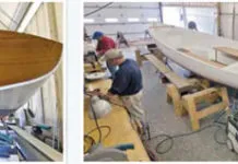 Modern engineering works well with many older designs. In the Stuart Knockabouts original plans, soft wood planks were mechanically fastened to hardwood frames and the its shoal-draft keel/centerboard was bolted to the keelson. Timber boatbuilding is labor intensive and the time-saving shortcuts found in molded FRP hull and deck construction have a well-proven track record. Add to this the fact that wooden hulls and decks are susceptible to rot, and its clear that Hardings vision of a fiberglass/foam sandwich Stuart Knockabout was a best-of-both-worlds solution rather than a sacrilege. The result of the FRP conversion is a stiffer/stronger, monocoque hull that required less maintenance and is much more immune to the elements.