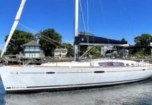 At last winter’s Paris Boat Show, Beneteau Groupe debuted a four-boat line intended to capitalize on its “design advantage.” Light and space were emphasized. “Ease of handling” and “intimacy with the elements” were buzzwords. The Beneteau 46 is a performance cruiser—long, low, and streamlined. Although it may look too racy to be a cruising boat, it is unique, attractive, and easy to handle. Its lowered center of gravity and elevated freeboard give it more initial stability than previous designs, and its mega-beam and firm bilges give it the power to carry sail well up the wind range. The 46 couples the naval architecture of Jean Berret and Olivier Racoupeau with an interior designed by Massimo Gino and Mario Pedol of Milan’s Nauto Yachts. Pros on deck include wide sidedecks, twin wheels that provide good visibility from the helm, adequate ventilation for warm climates, and a divided anchor locker. At sea with 10 knots of breeze, testers found that the Beneteau 46 helm remained light and the boat tacked through 90 degrees with minimal fuss. They noted a balanced helm and easy steering under both sail and power.