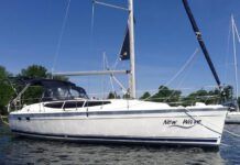 Practical Sailor recently test sailed Hunter Marine’s new Hunter 33, a redesign of the company’s popular compact cruiser. The most noticeable difference between the new Hunter 33 and its predecessor is the new deck plan, which includes a hinged transom cutout that folds down into a swim platform, offering more cockpit space and an expanded main cabin. The hull and steering setup also have seen some revamping, and testers found the boat to be fun to sail, even with in-mast furling and a batten-less main in the test boat. For a new, entry-level cruiser priced at $160,000, the Hunter 33 has a lot going for it.