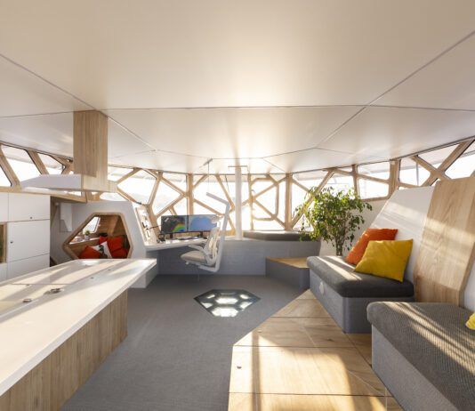 Hunter’s vision of the comfortable cruiser leads back to a center cockpit design.