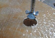 A modified roofing nail is perhaps the most versatile tool for removing core when sealing fastener holes. It is much easier to control than bent nails or cut-down allen keys, which can jump around as they spin. Core removal is more uniform. Wood chips are finer and easier to remove. It is faster than a Dremel cutter and undercuts twice as far.