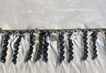 Testers first task was to determine whether any of these coatings could weaken line in the near term. To do this, we formed 20-inch loops of 1/8-inch polyester braid and nylon braid, coated a 1-inch length of the loop with each of the products, and broke these in our test rig.
