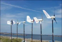 The micro-wind turbines assembled for this comparison include the KISS High Output Wind Generator, the Rutland 913, the Superwind 350, the Ampair 100, and a prototype of the Air Breeze. The four-day test period brought a good mix of light- and strong-wind days, so testers were able to review wind generator output in a variety of conditions. Wind speeds for the 4-day period averaged 12.6 knots, with two blustery days, so were not surprised the high-output, three-bladed wind generators topped the five-bladed ones overall.