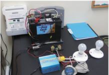 Our test gear comprised a ProMariner ProNautic 12-40P battery charger; West Marine-branded, flooded-cell, deep-cycle battery with a 75-amp hour rating; and two 120-volt, 70-watt incandescent light bulbs powered through a Heart 140-watt DC to AC inverter. This setup created a 12-amp DC load on the battery. We confirmed voltage and current draw using a Fluke Model 867B graphical meter and a Blue Sea Systems Model 8110-amp clamp/multimeter.