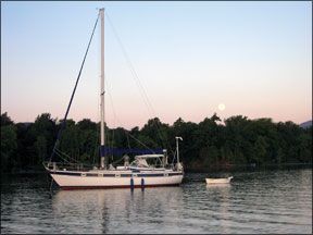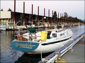 We had many lovely times aboard and finally sold her to finance a house in the country after our 2-year-old son, who could row a dinghy, did not recognize what a tree was! (We thought we were depriving him of a normal life. If we had only known!) We are finally back on the water with an Ericson Mk II 35-footer also named Brigadoon. After all, its our magical place!
