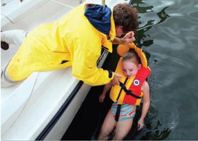 The launch operator was quick as a whip, and in less than a minute, he had pulled Joshua out, grabbing the collar grab strap on the Mustang Type III life jacket Joshua was properly strapped into.