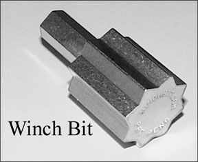 Reader Paul Carlson helped us locate a couple of bits that will fit a heavy-duty, cordless right-angle drill-the Milwaukee 0721-20 is suggested-and be used to power a manual winch. There is the WinchBit ($45,