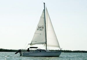 I enjoyed your review of the Catalina 22. My parents got one in the mid-’70s and I “inherited” her. My wife and I spent our honeymoon cruise on her, later we packed our 3 kids and a dog on it for a 5-day cruise. I fixed her up again for a 25th anniversary honeymoon-reprise cruise. Not a fast boat, but to learn to sail and cruise? Perfect. And growing up cruising in such tight accommodations made the trimaran I have now gravitated towards (a reaction to sailing slowly?) quite tolerable. It is a perfect starter-boat. Mast-raising is easy if done carefully and slowly with appropriate gin-pole and some “baby-stay” guy wires: the trick is to get the baby-stays to rotate around the same point as the mast-base so they are tight all the way up. Or to have some help keeping the mast straight during raising.