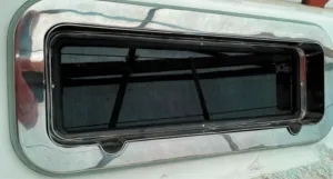 replacing the ports in my J/40 with ports from New Found Metals. They weren’t tinted, so I ordered the Vvivid material. After three tries, I developed a technique that worked. For bedding the ports, New Found Metals supplies butyl bedding and around the outside bezel there is a closed-cell foam 3/8” wide 1/8” thick with adhesive on one side. My openings were not the same as the new ports, so I was planning to get someone to close up the holes and do some other gel coat repairs on the sides of the cabin, but the yard is way to busy. So I am on to Plan B and doing the job myself. I bought G10 panels from Defender and cut them so they are ¼-inch bigger then the outside bezel. I plan to gel coat them and epoxy in place before installing the ports.