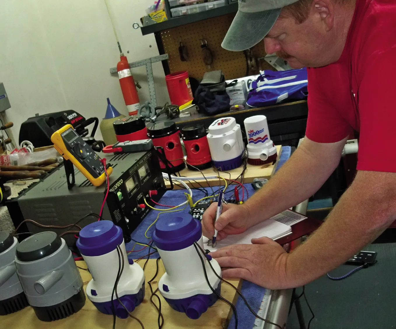 Enlisting the help of other pumps on board, including the engine’s cooling pump, to clear water in an emergency is a frequently cited strategy. On sailboats, however, the limited flow through the engine’s raw water system is unlikely to save a sinking boat. The highest capacity “emergency pumps” that we’ve tested are belt-driven impeller types from Jabsco that connect to the engine and irrigation pumps that connect to the drive shaft (see “Fast Flow Pump, the Name Says it All,” Practical Sailor August 2010).