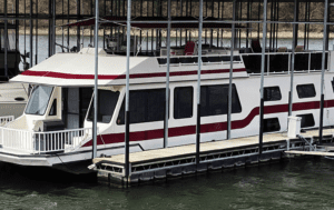 My boat, the Leviathan, is at Lake of the Ozarks in Missouri. It is a 56-foot Forever 10 houseboat built in 1996 by Fun Country Marine. I have owned this boat 19 years. I use the boat in my charter business Lake Adventures. We mostly do trips to Party Cove. She has two cameo appearances on the Netflix series Ozark, Season 1.