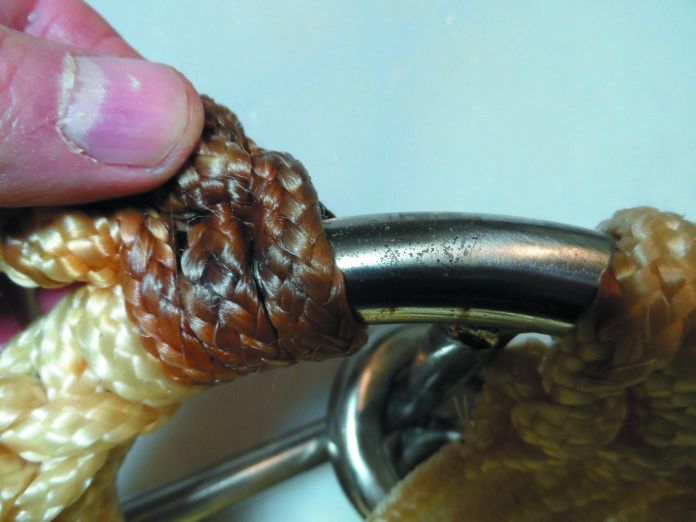 Often stainless steel hardware on our sails will begin to rust under the cloth webbing, not only staining the fabric and webbing, but inviting crevice corrosion.