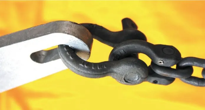 Perhaps the best example of why you don’t want the shackle pin going through a slotted anchor is illustrated in our first anchor shackle report, Anchor Shackles: The $15 Insurance Policy (PS August 2015 online). All of the shackle failures in that test occurred as loads concentrated at the pin threads as the shackle was pried open. By inserting the bow into the slot, you give the link more freedom of movement and greatly reduce the chance of failure if the anchor does not rotate to face the load in a wind shift.