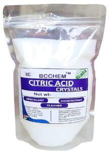 We’ve studied many acid cleaners for their ability to remove scale, dirt, and oxidation from metals and hoses. Muriatic acid, lactic acid, and phosphoric acid are highly effective, but we would rather not use these in potable water systems, because of safety issues and the risk of damaging susceptible metals.