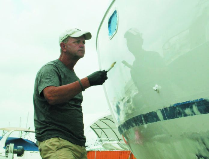 Primer: If the boat is a light color, use a light base primer that is as close in color to the final color. No dark primers for light-colored boats.