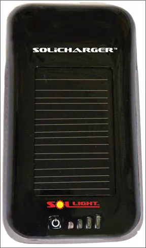 Super lightweight and not much bigger than iPhone, the Solicharger (2 ounces, 2.5 x 4.5 x .75 inches) is a portable lithium-polymer battery pack that can be juiced up via its small solar panel (100 mA output), a USB connection, a 12-volt adapter, or an AC adapter. It comes with a bevy of adapter plugs that allow users to charge any device that accepts a 5-volt output. That means, not only can you directly plug in your iPhone, some iPods, or iPod Touch to charge, but you can use the connectors to feed most handheld GPS devices, MP3 players, cell phones, and digital cameras.