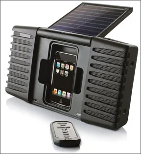 For those who don’t need a portable sound system but are looking for a way to charge todays smorgasbord of electronic devices without draining the boats batteries, check out the Sol Light Solicharger by Simply Brilliant.