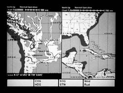 If you want true NOS charts in an electronic format, then you need to consider CD ROM-based charting systems using charts certified to meet NOS electronic chart standards. These charts are generally in a raster format, which do not scale as well as vector-based systems. Large screens are the most practical way to view these charts. The one true advantage of raster charts is that they are exact duplicates of familiar paper charts. The $10,000 Northstar 961XD (which, unfortunately, we could not obtain) is a prime example of a raster format plotter. Significan’tly more powerful computing power is required to effectively display and pan raster charts, and is reflected in the Northstar’s price. These raster systems can meet SOLAS standards established for commercial shipping.