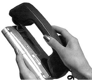 The phone looks like a larger cellular phone. With it, in addition to voice calls, you can connect it to a computer or PDA to send and receive e-mails or surf the Internet at a slow speed.
