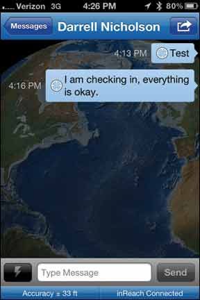 The next step is downloading the free DeLorme Earthmate app onto a mobile device. Android users can find it at the Google Play store, while iOS-device owners can download it from the iTunes app store. Once the Earthmate app is downloaded, the inReach is paired to the device (phone, tablet, etc.) via Bluetooth, allowing users to compose messages up to 160 characters on the device and send them directly as email or text messages. Messages can also be posted to Facebook and Twitter as well as the users MapShare page. MapShare is a web-based map that stores your inReach track points and messages so that friends and family (designated by you) can follow your trip.