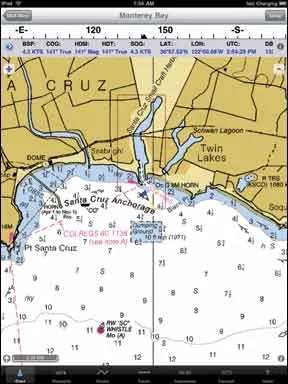 Navionics was originally our second recommendation behind iNavX, but its recent updates have really not kept up with the competition, particularly with regard to route and waypoint handling. Our subjective judgment of their proprietary development of the NOAA vector-chart data is that it is not as good as Garmin, and the Garmin user interface is much better.