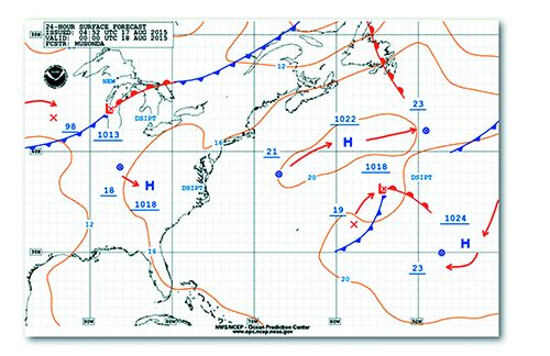 (top) is a familiar tool for offshore navigators. The colorized GRIB files with longer outlooks, require experience with interpretation to be most useful .