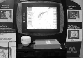The onboard XM WX system consists of a compact antenna similar to a conventional GPS antenna, plus a small receiver/signal processor comparable in size to that of the Weather Channel receiver. Full-color mages are presented on the boat’s computer screen.