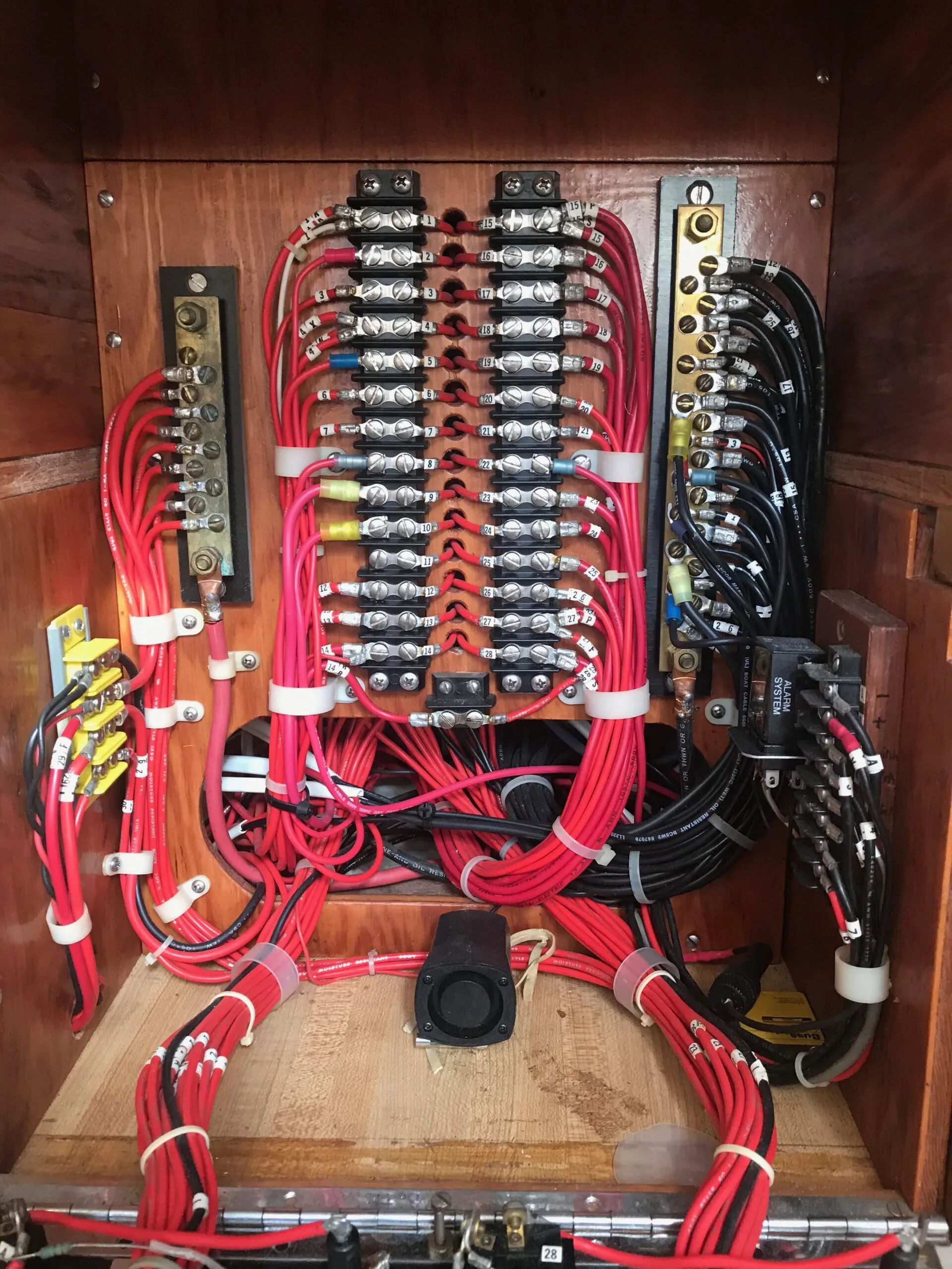 Well intentioned friends and relatives often make comments along the lines of, “Aren’t you scared of being out on the ocean, all alone, in a small boat?” to which I invariably respond, “No, with modern navigation, communications, weather forecasting and reliable engines, the risks that prior generations of sailors faced have been greatly reduced.” Two significant risk areas largely remain beyond the reach of modern technology, however: lightning and the risk of an onboard electrical fire. Onboard electrical fire risk has increased over the decades due to a significant increase in the complexity of boat systems, which has increased further still in recent years due to higher capacity batteries.