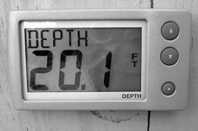 We tested nine digital display depth sounders from six different manufacturers in two categories: those with large displays and those with small displays, and two different ranges, which could simply be called “more expensive” and “less expensive.” This was not a comprehensive test of all the stand-alone depthsounders on the market. We focused on samplings from those ranges. Our thinking is that if you’re simply going to plug an old hole with a new sounder, one of the less expensive ones, provided it works decently, might be attractive for the price. On the other hand, there are features and capabilities in some of the more sophisticated sounders that may be worth the added expense. Obviously, if your instrument system consists of several displays from one manufacturer, it will make sense to consider adding or replacing an instrument that fits technically and visually with what’s already there.