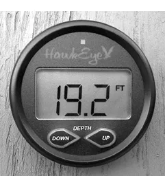 Display numbers on the Hawkeye are 9/16″ high and easy to see, day or night. A green backlight is on at all times. During on-the-water testing, the unit gave steady, accurate readings with a minimum depth reading of 2.7 feet and a maximum of 130 feet. Norcross claims a depth capability of 2 to 200 feet. It reads in feet or meters and has a 2-year warranty.