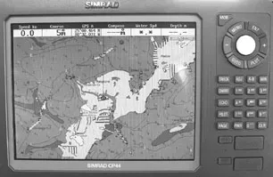 The Simrad 44-series chartplotter is a stoutly built, quality machine. Screen size is comparable to the other units tested: 10.4 inches on the diagonal, with a resolution of 640 x 480. The newest version of the 44-Series carries the CX designation. According to Simrad’s Tom Burke, “The CX44 is a building-block-based chartplotter with radar hardware already built in. To utilize the unit’s radar capability all you need to do is add a radome or open array and your CX44 is a chartplotter/radar. To provide fishfinder capability, just order the EM4X echosounder upgrade kit ($872). This kit provides the electronics to drive a pair of 1,000W echo-sounder outputs.”