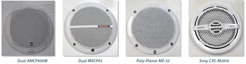 The coaxial speakers in this package are excellent quality and offered top-rate sound quality. They were the only ones in the group with magnetic shielding, making them better candidates for mounting near a compass or other sensitive electronics.