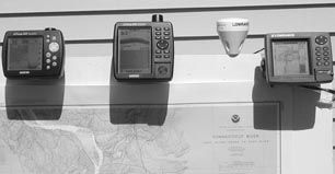 We tested the Lowrance with Navionics cartography. Garmin uses its BlueCharts. Lowrance comes with an external antenna, while the Garmin units are offered with either internal or external antennas. We tested the units with internal antennas. All three receivers are WAAS-capable.