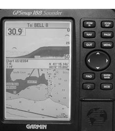 The Lowrance has some excellent fishfinder features, such as its HyperScroll, which locates and displays targets at higher boatspeeds with increased soundings per second. The Lowrance can also read the bottom to 2,500 feet, which is 1,000 feet deeper than the Garmin 188. Lowrance’s Steve Wegrzyn points out other benefits: “Lowrance introduced, and is still the only one, with waterproof slot(s) for non-propriety memory cards for recording sonar graphs, GPS details, and to load/display higher-detail cartography. Also, with an MMC (Multi-Media Card) and SD (Secure Digital) reader-writer for your PC, you can download software updates from the Lowrance website free, copy to MMC or SD card, and load into the unit for easy/fast/convenient operating firmware updates.”