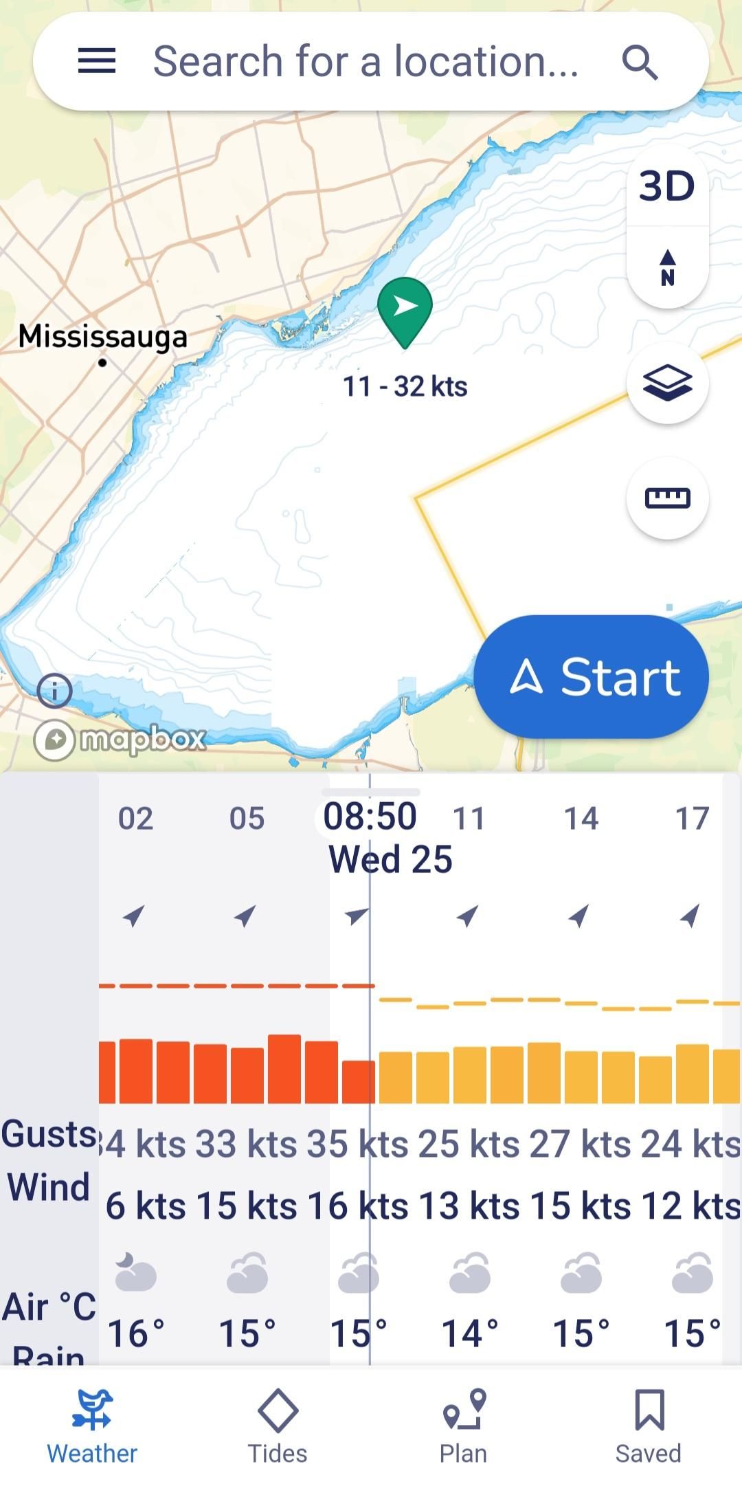 This is another great feature. With a simple click from the 2D, 3D or Satellite view, you can overlay the current, wind direction, wind speed, tides, temperature, etc., as well as scroll up to view the 10-days forecasted weather information. And, I must say it was pretty accurate during our recent 10 days in the British Virgin Islands.