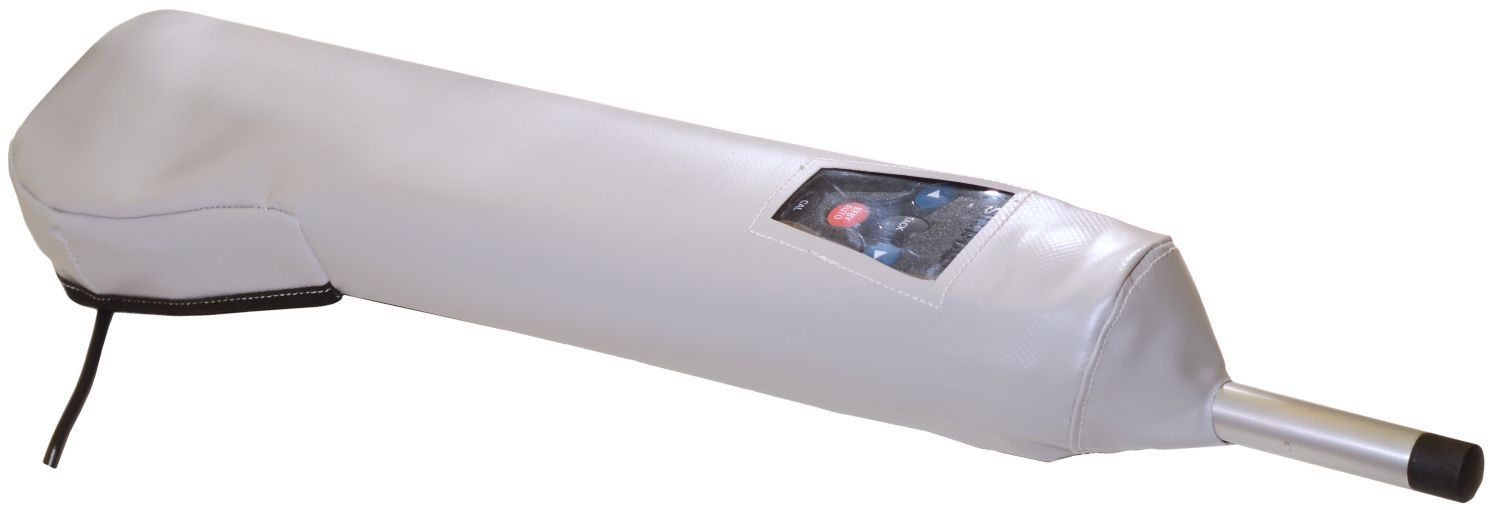 No commercial covers were available in the U.S. for testing, so we wrapped the upper half in white Sunbrella and measured a lower half skin temperature increase about 8 F above ambient, suggesting that the internal rise was slightly less than that of the naked unit (13 F), something like wearing a hat.
