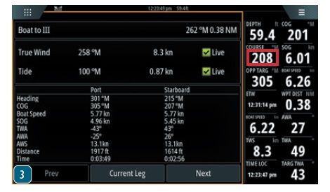 3. This page view, with boat heading 208 degrees (red box), shows several functions illustrated in the pairs above, but strictly in numerical format.