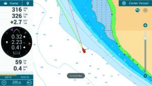 The SCX20 stands out in another way when paired with a Furuno instrument display. The instrument display shows off its abilities to detect slight differences in the direction and speed of moment at the bow vs. the middle vs. the stern of a vessel. Although a cruiser doesn’t need this level of accuracy, it could be helpful when using bow thrusters to keep a boat precisely oriented relative to a slip when docking. We wonder if there is an untapped potential to determine a sailboat’s leeway under each point of sail, and from that, even more accurately determine set and drift, or to possibly display the amount of leeway to the crew, possibly alerting them to sail trim errors.