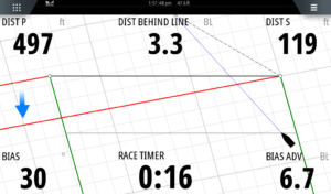 More modern MFDs additionally overlay red and green lines showing the sailor calculated lay lines after which sailing moves them away from their destination and the direction their boat would be able to achieve upwind if they were to tack at that location on the map. An MFD can even help the sailor line up and approach a race start at the ideal time.