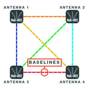 The SCX20 compares slight timing differences of the GPS signal arriving at each GPS sensor. By measuring these differences, the SCX20 can determine how far off-center any two GPS sensors are from being perpendicular to any given satellite. The SCX20 then determines the boat’s compass bearing, providing a reading like a magnetic compass rather than a reading like a GPS course over the ground.